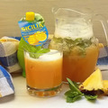 Ананас очистить от кожуры и сердцевины. При помощи блендера превратить в пюре.Смешайте яблочный сок, лимонный сок и сироп. Мяту промыть, обсушить и порвать на средние куски. Добавить пюре, мяту и перемешать. Закрыть и оставить на 2 часа в холодильнике.Убрать мяту, разлить по бокалам, добавить лед и подавать.
