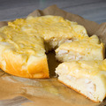 Пирог поднялся, а сыр красиво расплавился. Когда пирог будет готов, не доставайте из формы сразу, дайте ему постоять минут 10, отдохнуть. Наш красавец готов! Ура! Приятного аппетита! И как всегда, куриные пироги мне больше нравятся в холодном виде! Вот такой парадокс! :) Если вы будете печь этот пирог в духовке, то у вас получится ещё более румяная корочка.