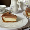 На основу из печенья выложить сначала белую массу, а потом темную. Выпекать 35-40 минут при температуре 160 град. Центр творожника должен слегка подрагивать.