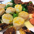 Собираем блюдо. На тарелку для подачи выкладываем листья зелени, поверх выкладываем гребешки и поливаем заправкой. Сбоку выкладываем бейби брокколи и поливаем соусом Провансаль. Бананы выкладываем по краю тарелки. Ломтики семги сворачиваем трубочкой и выкладываем на другом краю. Подаем. Приятного аппетита!