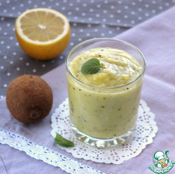 Очистить и нарезать киви. В чаще блендера измельчить всё в пюре. Разлить по бокалам. Напиток получается густой, меня это вполне устроило, но можно добавить апельсиновый или яблочный сок до желаемой консистенции.