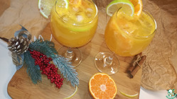 Один мандарин почистить, разделить на дольки и слегка подавить. Отправить в подготовленный графин, туда же порезать кружочками лимон (или лайм).