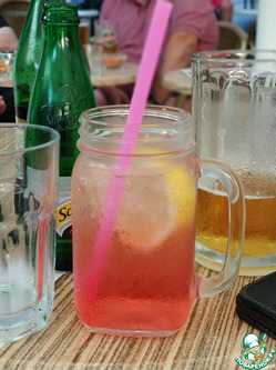 Залили это газированной водой и перемешали. Добавили кусочки льда. А теперь наслаждайтесь!