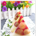 Заливаю дыню вишневым желе, помещаю её в холодильник до полного застывания желе (лучше на ночь). Нарезаю дыню сначала на круги, затем на треугольники. Освежающий сочный десерт готов! Приятного Вам аппетита!