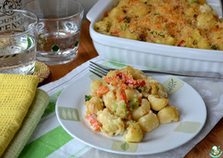 Поставить запекаться в разогретую до 180°C духовку на 20-25 минут, пока верх не зарумянится. Готовую кассероль достать из духовки, дать постоять 10 минут. Можно звать всех к столу!