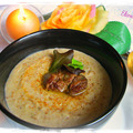 Суп из этого количества продуктов получается очень густым. Если вы любите более жидкий вариант, доведите суп до нужного вам состояния, добавив бульон. Налить суп в тарелку, сверху выложить кусочек печени, украсить зеленью.