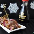 Готовим "сложный" ароматный маринад. Берём соевый соус, выдавливаем сок одного лимона, добавляем мёд, зёрна горчицы, молотые корицу, кориандр, кардамон, имбирь, чёрный перец и гвоздику. Заливаем сельдь маринадом. Сверху кладём лавровый лист и душистый перец, заливаем оливковым маслом. Всё перемешиваем и ставим в холодильник мариноваться. Лучше это делать за сутки. Подаём закуску из холодильника. Приятного аппетита!