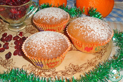 Тесто разлить по бумажным формам. В каждую форму положить дольку мандарина. Отправить в разогретую до 180 градусов духовку, готовить 25 минут. Остывшие кексы с мандаринами и клюквой посыпать сахарной пудрой. Подать к праздничному столу с горячими или холодными напитками.