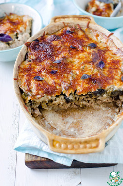 Для соуса обжарить муку со сливочным маслом 2 минуты, постоянно помешивая. Снять с огня и постепенно влить молоко постоянно помешивая венчиком, чтобы не было комков. Варить на среднем огне, помешивая, до загустения 4-5 минут. Влить 4 ст. л. соевого соуса и варить еще 1-2 минуты. Поперчить.