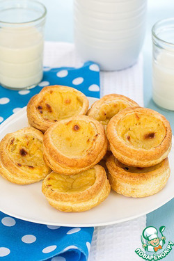 В это время включить духовку на 200 градусов для нагревания. Слоеное тесто раскатать в пласт толщиной 2-3 мм. Взять стакан диаметром около 5 см. Вырезать круги, у вас должно получиться четное кол-во кругов. Например, 20 (это просто пример).