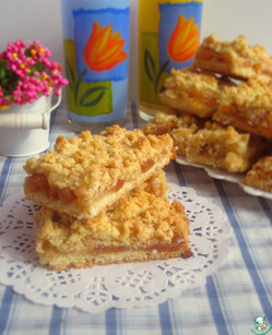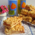Натереть вторую часть теста сверху, распределяя по всей поверхности. Отправить выпекаться в разогретую до 180 градусов духовку на 20-25 минут (ориентируйтесь на золотистый цвет краешков и верха). Готовое печенье вынуть из духовки и горячим нарезать на квадратики/прямоугольники. Дать печенью остыть и подавать к чаю!