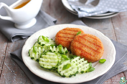 Готовые биточки полить растопленным сливочным маслом. На гарнир можно приготовить салат из свежих овощей. Приятного аппетита!