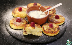 Жарю на растительном масле, на среднем огне с каждой стороны до золотистой корочки. Очень удобно переворачивать с помощью силиконовой лопатки! Сырнички готовы! Подавать можно со сметаной, сгущенным молоком, варенье, джемом, свежими ягодами. По желанию присыпать сахарной пудрой!
