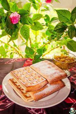 Подаем вафельки с пылу-с жару, пока они хрустящие, ароматные! Из указанного количества ингредиентов у меня получилось 6 вафель.
