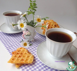 В хорошо перемешанную массу, постепенно, по ложке, добавляем муку. Муки может уйти больше или меньше, все зависит от размера яйца и консистенции йогурта. Полученная масса напоминает густую сметану. Попробуйте тесто на вкус, может нужно добавить немного соли. Выпекаем в вафельнице до золотистого цвета.
