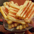 Теперь нарезаем на полоски примерно 0,5 см. Укладываем на застеленный бумагой противень. Выпекать при t= 180 до готовности. Обязательно остудить, иначе печеньки развалятся.