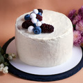 Чернично-ликерный соус. Накрыть третьим коржом. Сделать черновую обмазку. Обернуть ацетатной пленкой, затянуть кольцом. Дать настояться ночь в холодильнике. Настоявшийся торт покройте кремом и выровняйте. В честь первого снега украшаем торт клюквой в сахаре и другими ягодами.