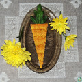 Слегка остывший корж разрезать вдоль пополам, а каждую половину на треугольники-морковки. Подравнять края (образки сами знаете куда деваются). Получается целое блюдо солнечных и полезных коржиков. Пора завтракать!