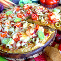 Для начинки нарезать любую колбасу (у меня сервелат) и оливки колечками. Основу смазать соусом "сладкий чили" или кетчупом. Покрыть начинкой. Нарезать помидорки и капнуть кетчупом. Посыпать тёртым сыром. Поставить в духовку и запечь до расплавления сыра минут 15. Украсить любой зеленью. Подать в горячем виде.