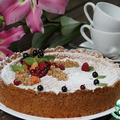 Готовый пирог остужаем, украшаем и подаем. Я украсила сахарной пудрой и ягодами. Летом ягод много не бывает)).