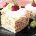 Повторяем слои до тех пор, пока не закончится начинка. Завершающий слой - два блина внахлёст. Получившийся торт сверху закрываем фольгой и убираем в холодильник на несколько часов, а лучше на ночь. Подаём торт, нарезав на порционные кусочки, украсив взбитыми сливками и ягодами по вкусу.