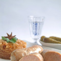 Поместить рис в кофемолку и смолоть его в крахмал. Свиную шею, лопатку и сало смолоть на мясорубке с мелким решетом. Добавить соль, сахар, молотый перец, паприку, кориандр, мускатный орех, рисовый крахмал, чеснок. Влить воду.