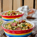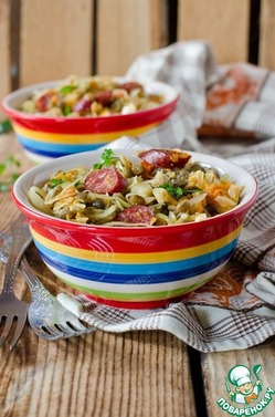 Капусту снять с огня, добавить в нее чечевицу, колбаски, перемешать и отправить в разогретую до 180 градусов духовку на 10-15 минут. Подавать горячей, посыпав свежей рубленной петрушкой. Приятного аппетита!