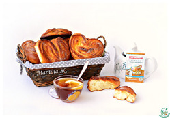 Каждый колобок раскатать не очень тонко, но и не толсто в прямоугольник, примерно 4 мм. Смазать растопленным сливочным маслом. Посыпать сахаром или сахаром с корицей, или смесью сахара и дробленых грецких орехов. Я делала микс. Свернуть рулетом. Сложить пополам, края защипнуть и немного подвернуть во внутрь, чтобы форма плюшки была ровненьким сердечком. Разрезать острым ножом отступив 2 см от края, который защипнули и подвернули во внутрь.