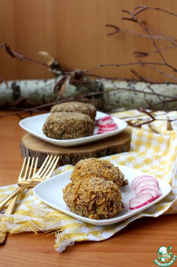 Сформировать котлеты, обвалять в панировочных сухарях и выложить на противень, смазанный маслом или на пергаментную бумагу. Выпекать в разогретой до 190С духовке около 30-35 минут. Приятного аппетита.