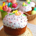 Посыпка кондитерская (В рецепте использовался цветной сахар (розовый), кондитерская посыпка, готовые фигурки для оформления куличей, вафельные цветы.)