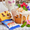 Для декора рекомендую взять готовую глазурь. Пакет с глазурью поместите в горячую воду на несколько минут, чтобы глазурь нагрелась и покройте верх кулича.