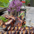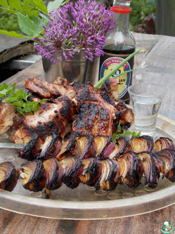 Запекаем на не жарких углях примерно 10 мин. переворачивая постоянно. Как только увидите, что лук начал раскрываться, проливаем его (сняв с мангала ) оставшимся соусом, чтобы он попал во внутрь.