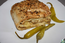 Разогреваем духовку на 200 град. и выпекаем до золотистого цвета. Это примерно 40 минут. Смотрите по духовке, как пирог будет золотистым, значит готово. Наш берек готов. Приятного аппетита!