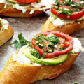Ломтики батона намазать сыром. Сверху разложить кабачок. И кружочки помидора с зеленью. Подавать незамедлительно. Приятного аппетита.