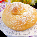 Разделить тесто на равные по весу кусочки, у меня 11шт по 49г. Сформировать шарик, накрыть пленкой и оставить на 5мин. Каждый шарик растянуть в жгут, слегка подпылите мукой рабочую поверхность. Жгут свернуть в форме улитки.