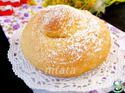 В центре булочки тесто слегка вдавить. Конец завести под булочку. Заготовки смазать растопленным сливочным маслом и присыпать сахаром. Выложить на противень, застеленный пекарской бумагой или коврик для выпечки, на расстоянии друг от друга.