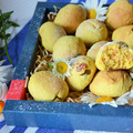 Приготовить все продукты, масло из холодильника достать заранее, за 1-2 часа. Изюм промыть и залить коньяком на 2 часа. Духовку включить на разогрев. Взбить мягкое сливочное масло, сметану и сахар. Добавить яйца, соль и ванилин. Взбить. Смешать просеянную муку, куркуму, разрыхлитель и соду, добавить к масляной массе и смешать. Когда я готовлю выпечку с молочно-кислым продуктом (кефир, йогурт, сметана и т. п.), я часть разрыхлителя заменяю содой. Добавить изюм с коньяком. Замесить эластичное тесто, при необходимости добавить муку.