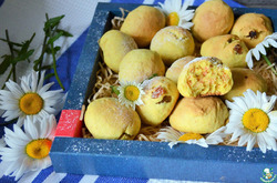 1: Тесто раскатать, 5-7 мм толщиной, и вырезать формочками заготовки.