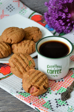 Через указанное время духовку включить на разогрев. Тесто разделить на кусочки по 17-18 г, подкатать в колобочки, сформовать печенье, приплюснув вилкой ( или по своему желанию). Выпекать 10-12 минут при 180 градусах, до лёгкого румянца. Готовое печенье остудить на решётке. Выход 580 г