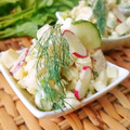 Картофель и яйцо отвариваем до готовности, нарезаем на небольшие кубики. Я воспользовалась пароваркой: нарезала картофель на кубики, а затем "запароварила" вместе с яйцом - 15 минут - в все готово. Главное, не забыть посолить.