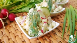 Яйцо нарезала с помощью овощерезки.. очень удобно! Нарезаем зеленый лук кольцами. Редис нарезаем тонкими кольцами или полукольцами в зависимости от размера. Сельдерей также нарезаем тонкими ломтиками. Огурец нарезаем кубиками.