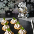 Берём кулинарный мешок, отрезаем конец, вставляем насадку. У меня закрытая звезда большого диаметра. Кладём в пакет мусс и отсаживаем на остывшие крекеры. Подаём закуску охлаждённой, украшаем зеленью.