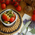 Готовим всё, что нам пригодится для салата. Выкладываем в салатник нут и фасоль.