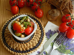 Для салата нут я отварила заранее. На пару приготовила стручковую фасоль буквально пару минут и обдала её сразу холодной водой, чтобы она оставалась поярче.