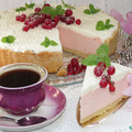Желтки взбиваем с сахаром, соединяем с творогом, йогуртом и крахмалом. Добавляем сок красной смородины 3 - 4 ст. л и перемешиваем.