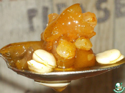 Немного ароматнейшего варенья остается и с огромным удовольствием можно его продегустировать! Густой сироп по вкусу и консистенции напоминает жидкий майский мед! Орехи, изюм и кусочки груш создают потрясающий букет! Приятного Вам осенне-зимнего чаепития!