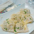 Равиоли с копченой горбушей и креветками