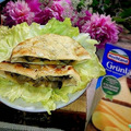 Питу я использовала готовую, продается во многих супермаркетах. Каждую питу, я обычно режу на 2 части. Сыр режу произвольно небольшими пластинами.