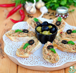 Пробить все до однородного состояния. Нарезать чиабатту, подсушить в духовке до состояния гренок, хрустящих снаружи но мягких внутри. Намазать пастой гренки, украсить листиком базилика.
