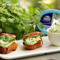 Приправить по вкусу солью и черным перцем, влить оливковое масло. Добавить мелко нарезанную зелень (у меня кинза). Измельчить все при помощи погружного блендера. Должна получится гладкая однородная масса. Намазать дип на кростини.